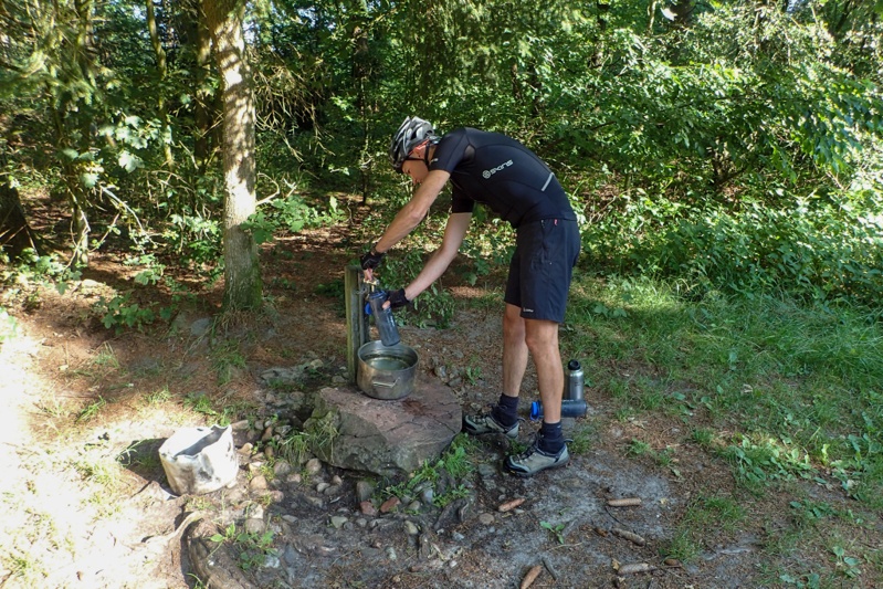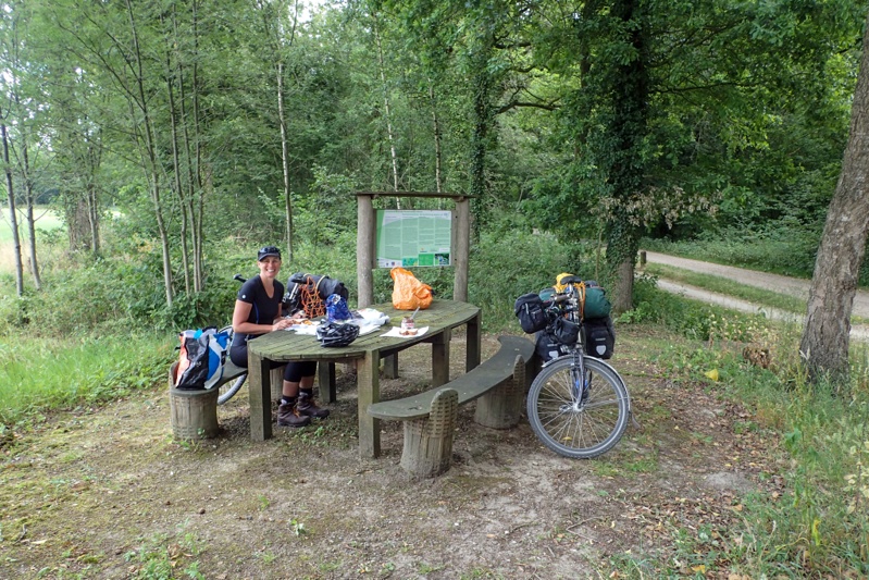 Our camp is in the coolest spot, on the edge of an oak forest along a wheat field. With a sunny afternoon on the cards we chose a grassy bank overlooking the wheat. Mike had a walk to fill two water bags at the nearby stream and then I went after to do the "washing" of the cycle clothes. I use the term loosely as dousing socks, gloves etc. that have been used for a week in 5 L of river water once or twice does not a laundry-woman make, but better than nothing! After this is was 17:00 and of course it had clouded over so we can only hope everything dries by tomorrow. Of course we have more than one pair of cycling clothes, but carrying wet gear on the back of the bike looks unprofessional!