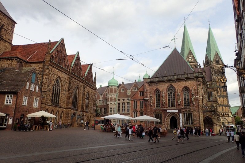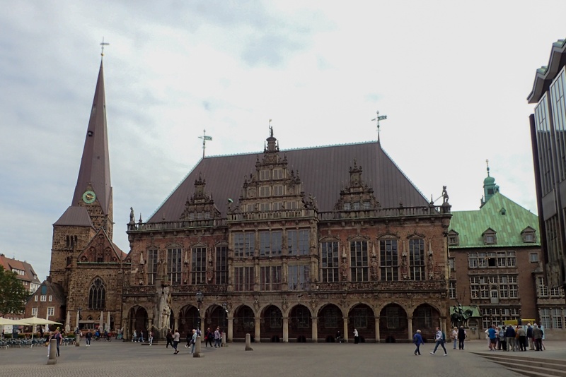 We realised that the route we were following was actually a local cycle route called "Osnabreauk-Bremen" so that was good! The route into the city was perfect, on dedicated cycle paths all the way. As we drew near to the main streets, we slipped in behind two old fogeys on their bikes which is a good tip for navigating any European city by bike. You will have to crawl along, but they know all the best routes and where best to cross roads, etc. Also, no one is going to mow down the old lady on her bike, so you're safe! We arrived at our hotel in perfect time for check-in. It is well situated just at the Old Town. Bremen has many beautiful old buildings, clustered around market squares. We like it here very much.