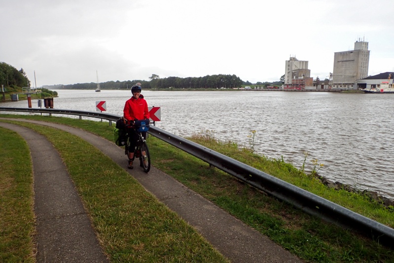 Another day's ride through peaceful rural Germany! As it was Sunday the shops don't trade, but the bakeries are open so we stopped early at one for delicious fresh buns. We stopped soon after for our morning flask coffee break. We were headed for the Elbe River which we would cross just west of Hamburg. We were not really interested in seeing Hamburg. It was a cool day and a bit breezy, although the headwind would really kick in towards the end of the day. We passed the Hamburg Airport on the way to the river. We caught the Teufelsbruck ferry which had space for bicycles. As the Elbe is busy with barge traffic and the ferry crosses this at 90 degrees, the ride was short and VERY bumpy. You could barely keep on your feet! Bicycles fell over if left unattended! The trip was about 5 min and then you emerged on the Hamburg side of the Elbe. The route ran along the river for some kilometers, very scenic.