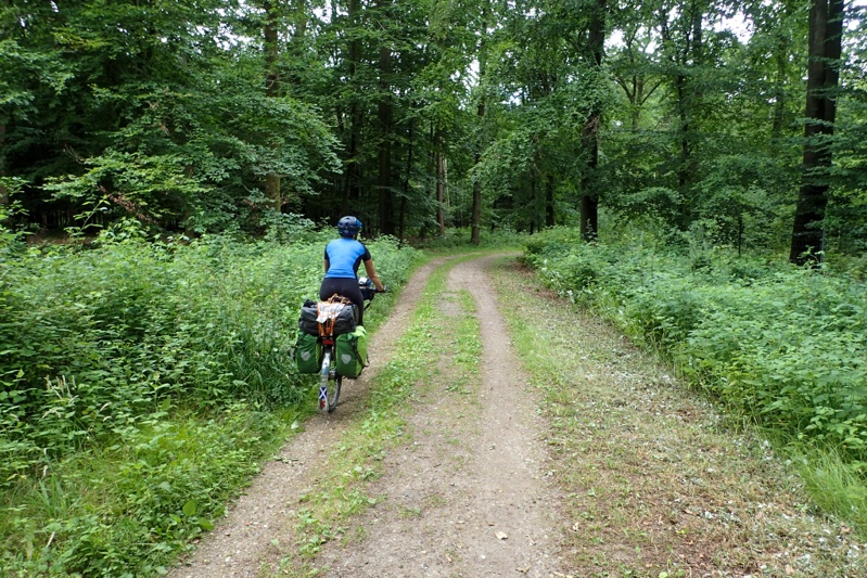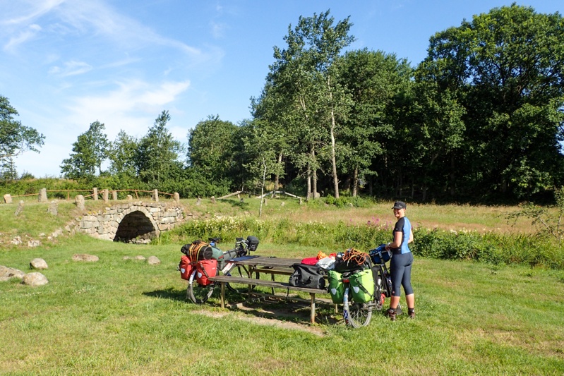 Our main stop was Jelling, UNESCO World Heritage Town due to the remains of Viking civilisation located there. It is a lovely spot, very low key, with a great info centre/museum. It is a cool place to visit. The weather today was quite humid and clammy and thunderstorms threatened this afternoon. The terrain is getting a little hillier now, which is a good thing as the legs need to get back into that! We are camped in the middle of an old pine forest which was very peaceful. We filled up with water at nearby river.