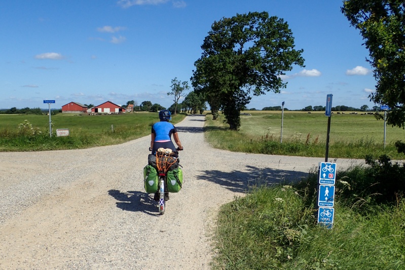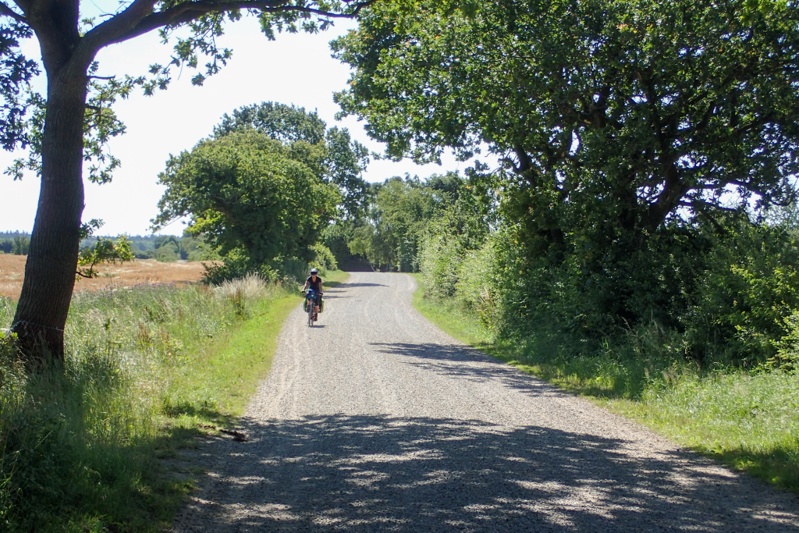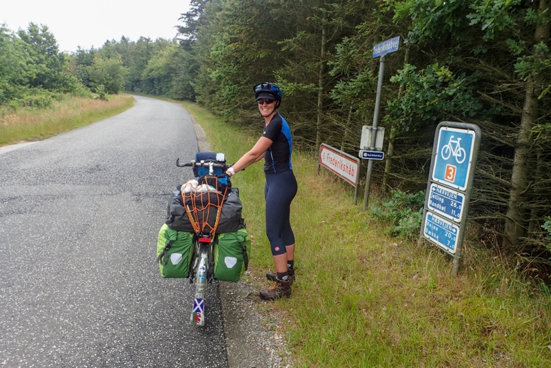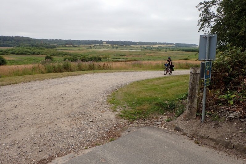 We started our ride through the beautiful Rold Skov woods near Arden and checked out the amazing shelter place they had there. There are little wooden shelters for sleeping in, with lovely forest views and toilet and drinking water, as well as the lake close by. All free camping. There was a lady sitting at the opening of her shelter, knitting in the morning sun! The route through this section was very pretty and we stopped quite early in the day for coffee and buns in a meadow with our first Danish sheep! After this our beloved Hærvejen took a turn for the worse, going to very rough gravel walking track and finally deeply-rutted single track, where I fell off my bike, no serious damage done fortunately. After this we went through various stages of hating Hærvejen throughout the day. The route just really changed today, the scenery was still lovely, but the route was mainly on very bad off road surfaces. Aarborg, a big town en route today, had a bad entry into it on these rough little roads for cyclists, and once we were in there it was not cycle-friendly to navigate. There were a lot of roadworks which didn't help. We were happy to leave.