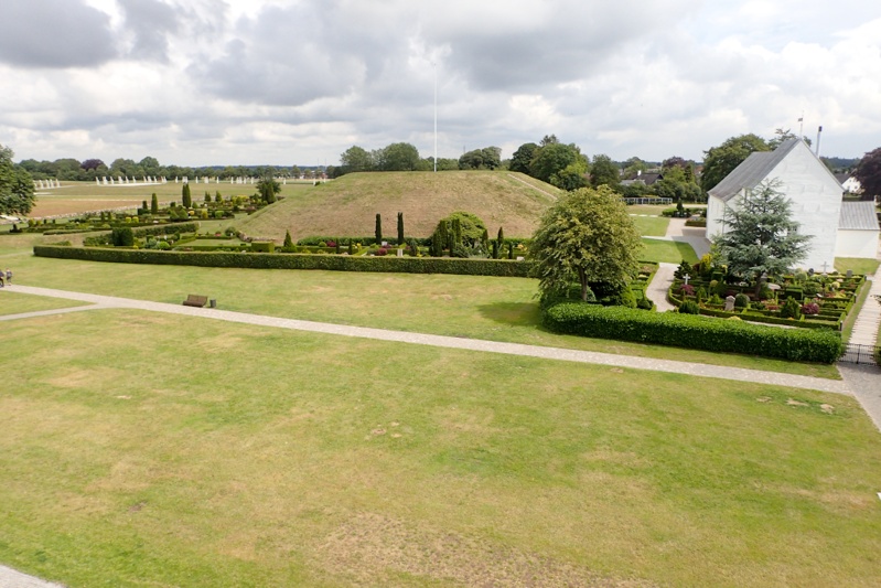 The weather forecast promised sunshine all day today, but it only appeared in the afternoon. The day was grey and quite cool. Our washing did not dry overnight so I loaded my cycle outfit onto the back of my bike. Mike wore his as damp clothes don't bother him and he reckons that they can dry on the body! We rode/pushed our bikes up the little walking track we had ridden down last night and hit the road. Another beautiful route today. We cannot recommend the Hærvejen enough and it is popular with cycle tourists too. We entered Viborg on a rail trail and then continued along the lake edge. It is a big town, we did not go into it. We stopped to buy bread rolls for a morning snack and ate them at the little bench and table set out at the village entrance. The next stop on our route was Fyrkat, which was an ancient Viking fort. From here we passed through some forest and in and out of villages. Jutland (this rural part of Denmark we are cycling through) is very beautiful and peaceful and has a lovely feel to it.